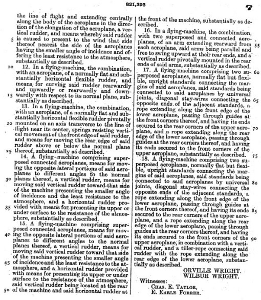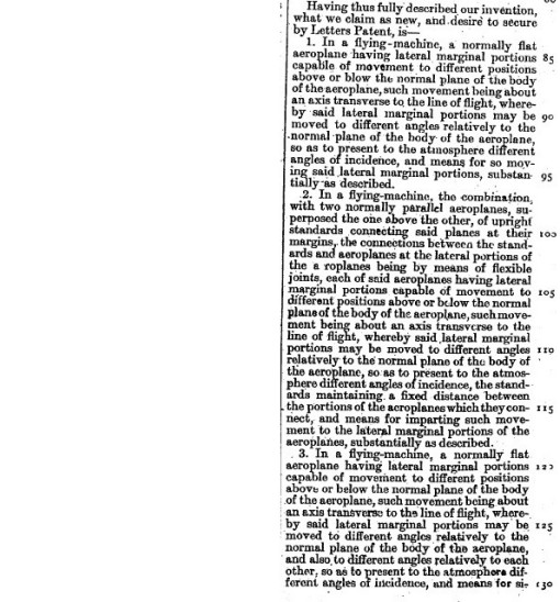 In Gibbs-Smith's review of Whitehead's claim to first flight, he cites the fact Whitehead filed a patent only for a glider as an "admission" he never achieved powered flight.