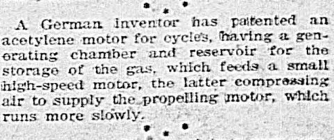The invention of an acetylene motor by a German inventor was reported in American newspapers in early 1900: