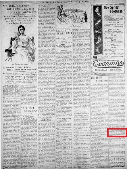 Ad 1/... The Bridgeport Herald was a weekly appearing on Sundays. The report was published at the soonest possible date in the next edition, four days later.