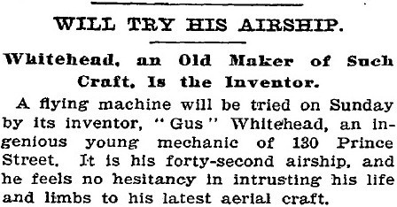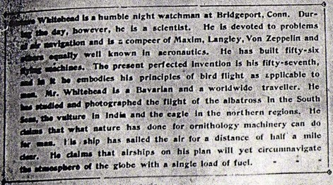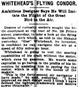 "This new machine will be the twentieth I have made," Whitehead said as he paused in his work to-day and talked about the invention that promises to make him famous for all time. Eighteen of them were failures through some small fault that I could not fathom at the time. But the last one I made rewarded my years of effort and accomplished what I have so long been trying to solve."