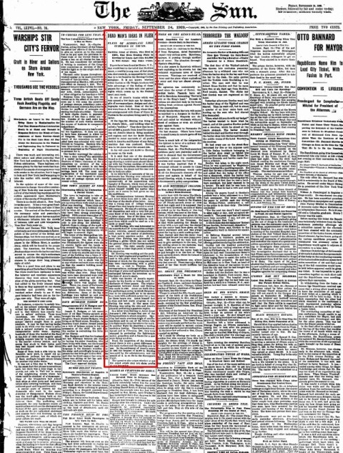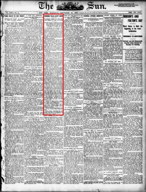 New York Sun, Sept. 25, 1909, p.1