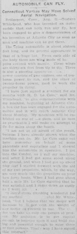 News reports: 1901/2 flights