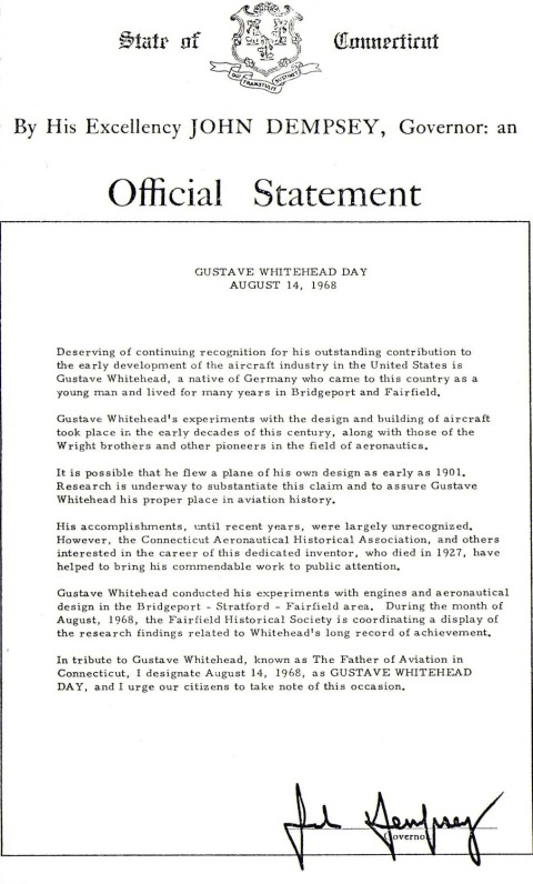 Signed into Law on Aug. 15, 1964 by Connecticut Governor John Dempsey
