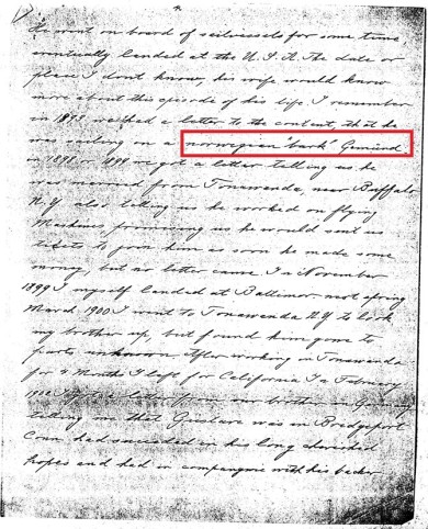 was sailing on a norwegian 'bark' Gomünd."