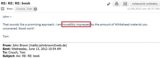 Email, Tom Crouch to John Brown, 2012-06-13, 16:57pm