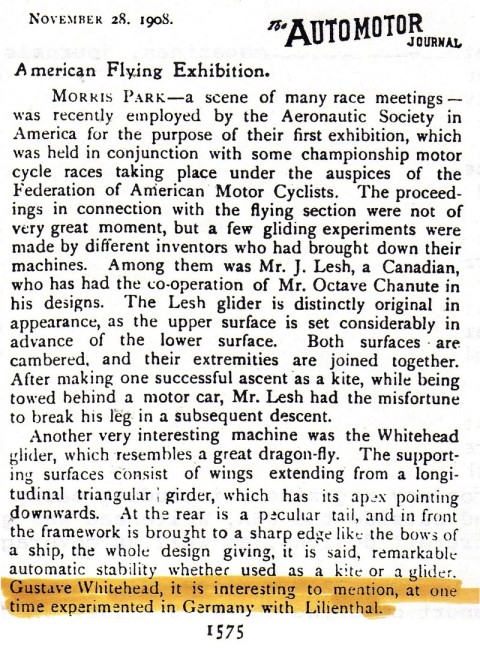 Gustave Whitehead announced plans to enter the competition with an aircraft powered by a 50 hp engine of his own design. [ ] Whitehead was, at the time, a well-known builder of engines and airframes.[ ]