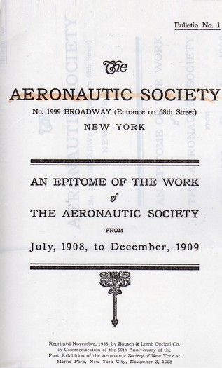 The Aeronautic Society of New York and the Birth of American Aviation, 1908-1918, Crouch, T., 1912 (draft for NY Magazine)