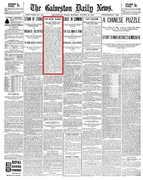 Galveston Daily News, Aug. 19, 1901, p.1