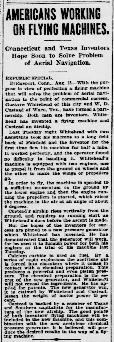 News reports: 1901/2 flights