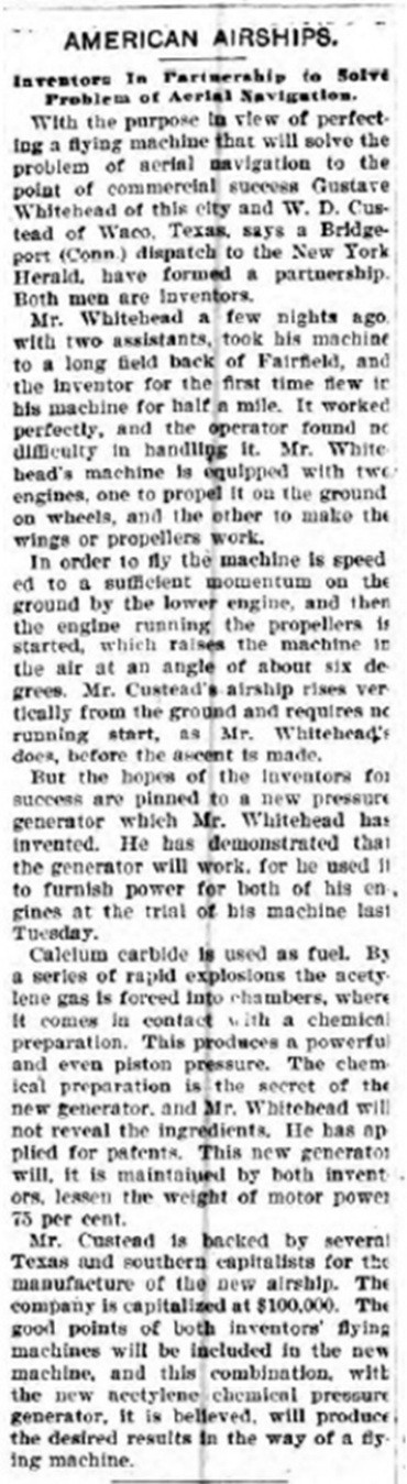 News reports: 1901/2 flights