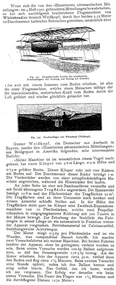 ersten Versuche. Die Dauer des Fluges war 1 1/2 Minuten und