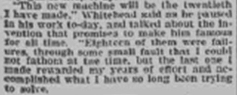 Whitehead himself described the flight in NY Evening Telegram, 1901-11-19, p.10