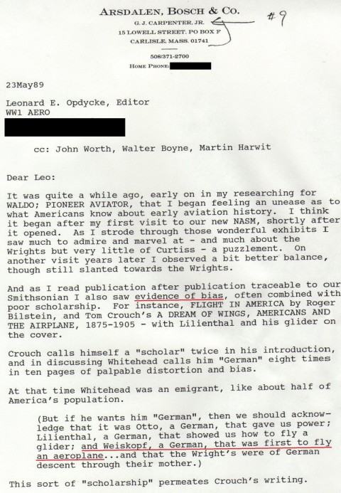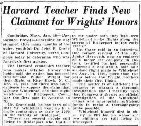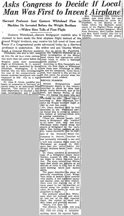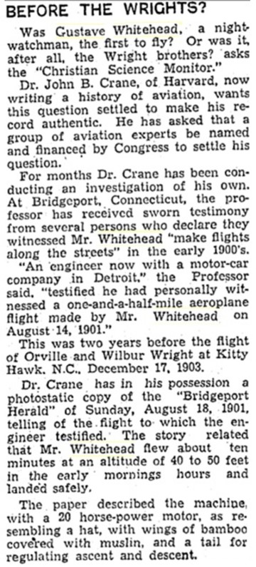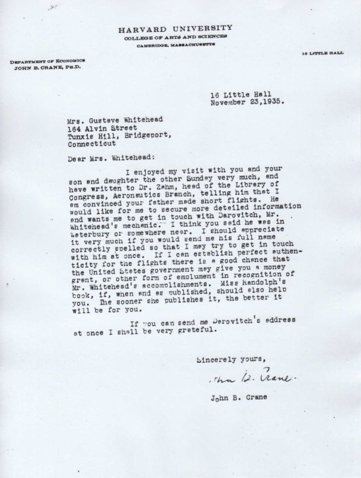 1. Dr. (later Prof.) John B. Crane (Harvard) to Louise Whitehead (Gustave Whitehead's widow)