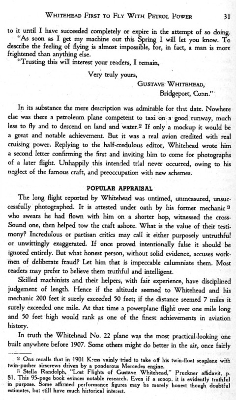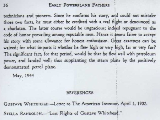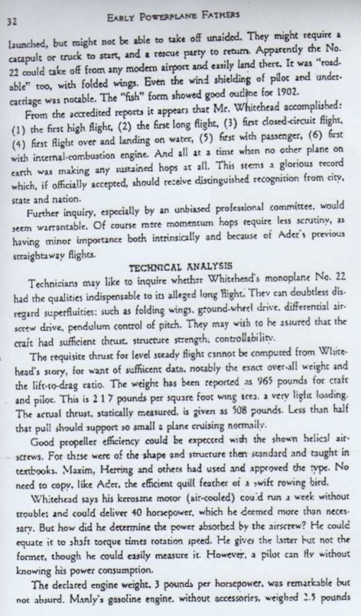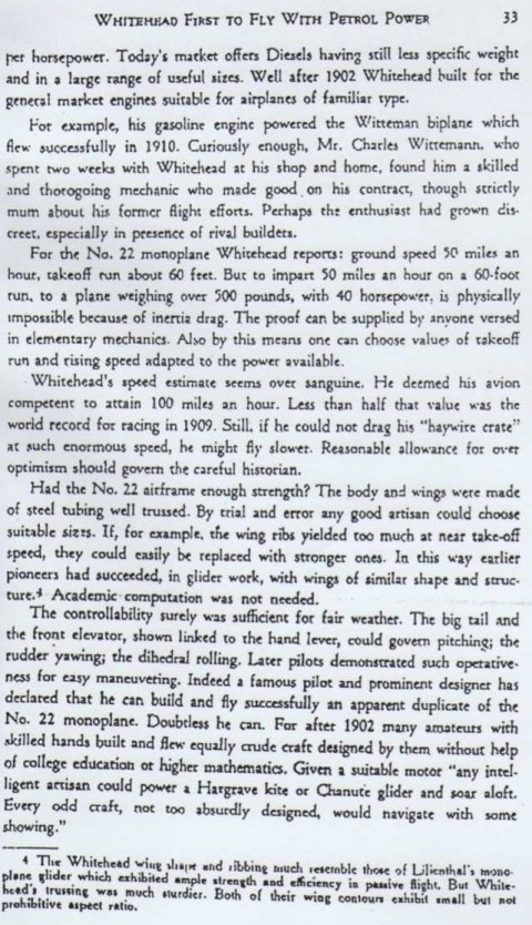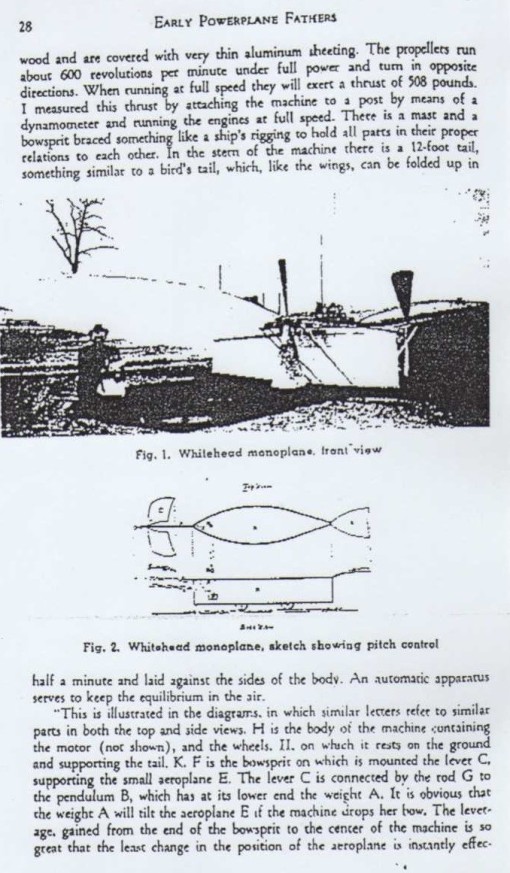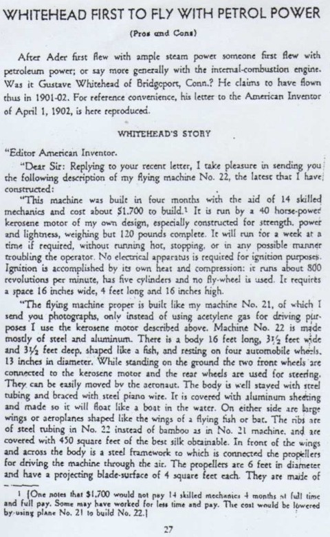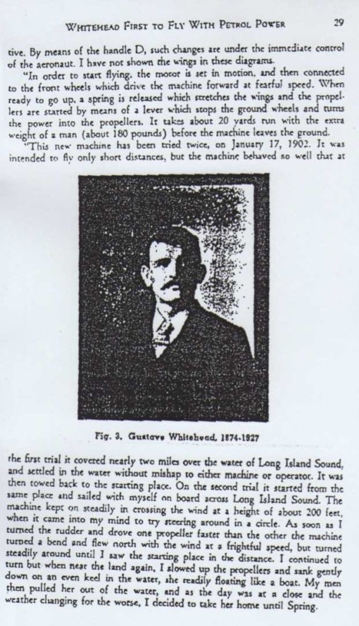 "Plane No. 22 in which Gustave Whitehead made a circle over Long Island Sound, Jan. 17, 1902"