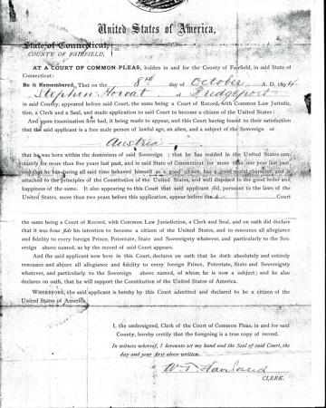 Citizenship document of Stephen Horvat[h]and sons, Nicholas and Julius. front and back. 1894,1907, 1911. In possession of Phillip Moore.