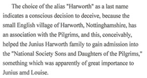 The blogger states that my uncle, Julius Horvath, used an “alias,” ”Junius Wentworth Harworth III” rather than referring to it as an “Americanization” of his name (Gray, “Wandering Diogenes”). The blogger suggests this was done with fraudulent intent. I wonder how many of the readers of the blog would be deeply offended by the suggestion that any name change by their ancestors was an intent to deceive? It’s hard to fathom that anyone writing about any aspect of the history of this country would have such an anti-immigrant view of our heritage.