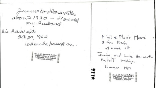We always knew him as Uncle Julius, even though we were aware of his name change to “ Junius Harworth,” at the behest of his wife and mother-in-law. Contrary to the blogger’s allegations that Julius’s name change was kept from the family, the introductory letter from Stella Randolph to Julius explains that Ms. Randolph went to my grandfather’s pharmacy to find the address of “Wentworth. J. Hurvath,” and my grandfather immediately suggested she contact his brother in Detroit (letter, Stella Randolph to Junius Harworth, July 15, 1934, William O’Dwyer Collection, Fairfield, Connecticut Historical Society). My grandfather obviously knew of the name change, as did my mother, Grace Horvath Matus, who was also working in the drugstore at that time and described that encounter to me on several occasions. The neighbors who had directed Ms. Randolph to the pharmacy also apparently knew of the name change.
