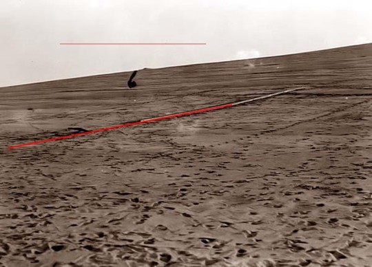 The flight occurred in ground effect (where a type of compressed air cushion between the wing and the ground provides added lift). It ended in a crash. The plane was launched from a rail on a sloping sand dune. The flight's trajectory continued downward along the slope.