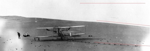 The famous photo of the Wright brothers' first powered flight on Dec. 17, 1903 was released on May 20, 1908. It was taken near the shortest day of the year in a blustery wind (27mph), i.e. in challenging lighting and flying conditions. A local lifeguard took the well-focused snapshot. The camera, tripod and glass plate negatives were carried through the sand dunes to the site, 3 miles from the nearest drop point. The location was described as a mosquito-infested. Puddles there had frozen overnight.