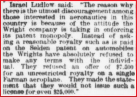 "Instead of asking a reasonable royalty [ ] the Wrights [ ] refused an offer of $7,500 [ ]. They made the statement, that they would not issue such a license for even $25,000."